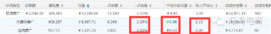 可以看出定向的点击率比关键词搜索还要高,ppc比较低,投产也高,所以定向今年必须要尝试去做去测试,效果好的话就逐步以上坡法提高定向流量。