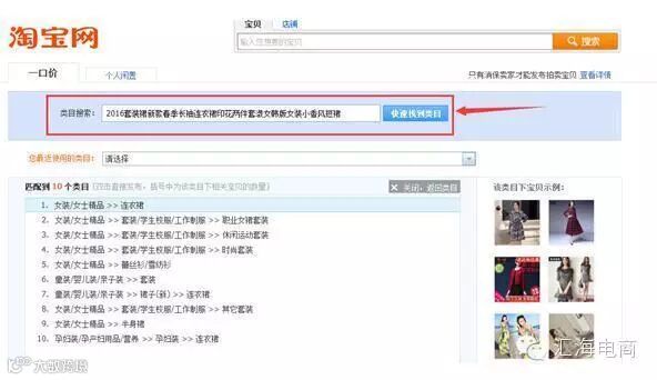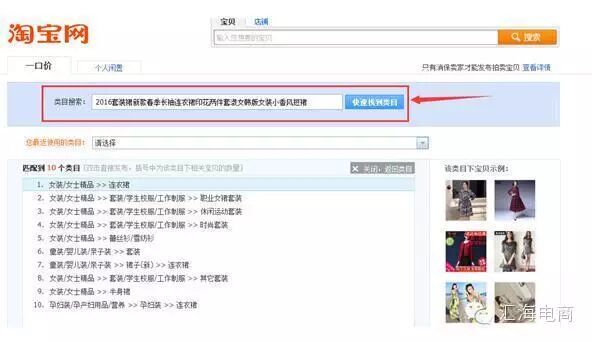 进淘宝后台,点击发布宝贝,复制综合排名前几名宝贝的全标题,进行类目搜索,一般在第一的都是最优类目,如下图: