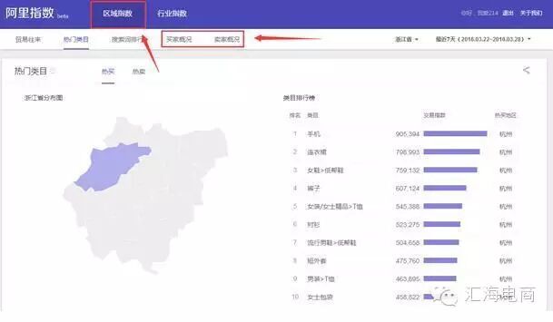 这个阿里做的更细致,细分为了区域指数和行业指数。