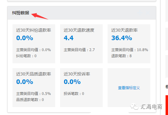 2、近30天纠纷退款率超过店铺所在主营类目的纠纷退款率均值的5倍,且纠纷退款笔数3笔的(主营类目的纠纷退款率均值,以卖家中心页面显示为准),限制参加营销活动;