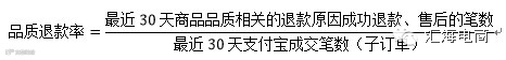 品质退款率:是指30天内品质退款成功退款笔数除以近30天支付宝成交笔数;品质退款率计算方法: