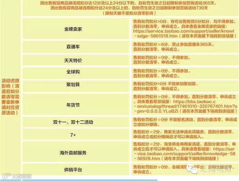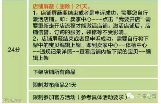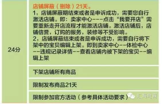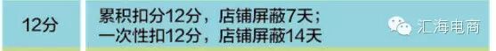 12分:累积扣分12分,店铺屏蔽7天,一次性扣12分,店铺屏蔽14天
