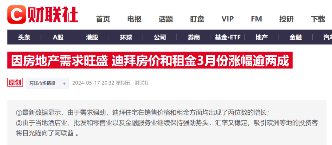 因房地产需求旺盛,迪拜房价和租金3月份涨幅逾两成