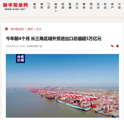 前4个月,长三角区域外贸进出口总值超5万亿元