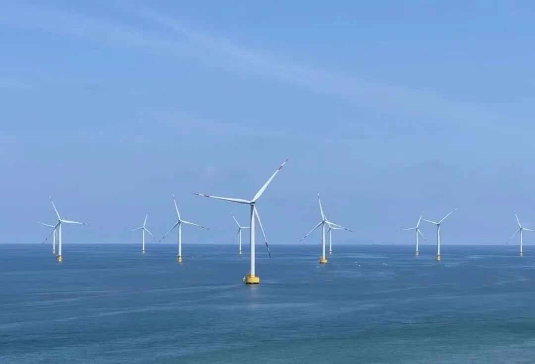 白色风车在海面上肆意转动
