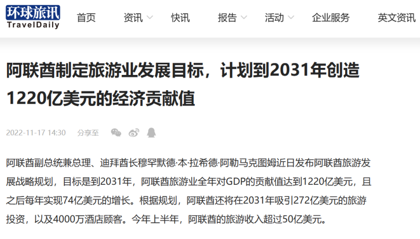 其次,阿联酋作为全球知名旅游目的地,其酒店业发达,带动了家纺行业的发展。2022年11月中旬,拉希德·本·穆罕默德·本·拉希德·阿勒马克图姆殿下发布了《阿联酋旅游战略2031》,其中指出将阿联酋打造成全球最佳的旅游目的地。战略将提升阿联酋国家在国际市场的综合旅游竞争力,截至2031年将吸引1,000亿迪拉姆(约等于273亿美元)的投资,以及超过4,000万名游客入住当地酒店。