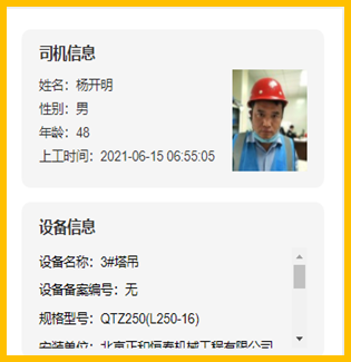 在驾驶室内安装生物识别装置,工人进入塔吊室先进行人脸比对,后台精准识别当前设备驾驶员的信息无误才能进行操作。