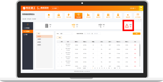 为塔吊相关单位提供加大管理力度、严格执法的依据,进而监督操作人员和指挥人员提高安全意识减少或杜绝安全事故隐患;另一方面,及时的预警功能又能及时提醒操作人员预防突发的安全隐患。