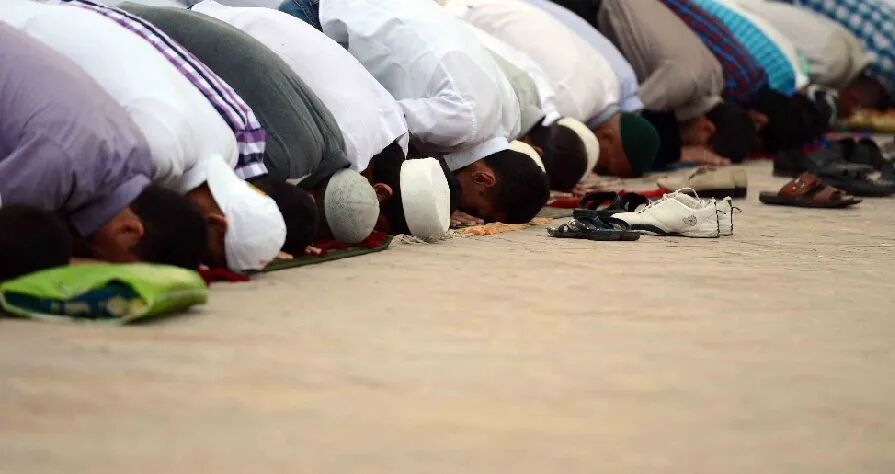 有的地方因参加会礼的穆斯林过多(有达万人之多),清真寺容纳不下,就另择一处地势平坦、宽敞干净的场地作为会场。当阿訇宣布会礼开始,大家铺下毯子或小拜毡,脱下鞋子,面向圣地麦加古寺克尔白天房方向叩拜,完成天命拜功。