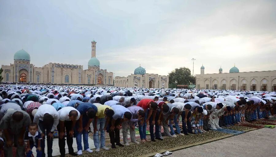 在乌兹别克斯坦,3300万人居住,超过90%的人口信奉伊斯兰教,每年在乌兹别克斯坦首都塔什干哈斯特·伊玛目建筑群清真寺广场,人们参加开斋节礼拜。今年虽受疫情影响室外活动有所限制,但非聚集性庆祝活动会依旧保持。