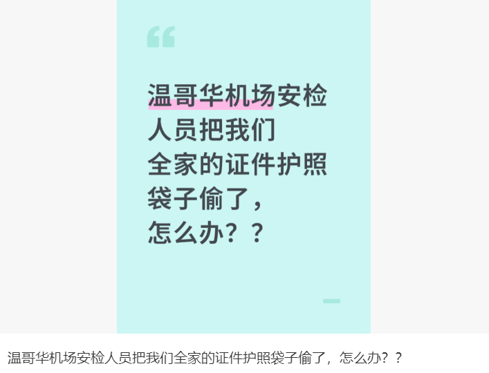 近日,一位华人小红书网友发帖称,当她和家人在温哥华机场安检时,竟然发现自己和家人的证件护照袋子不翼而飞。