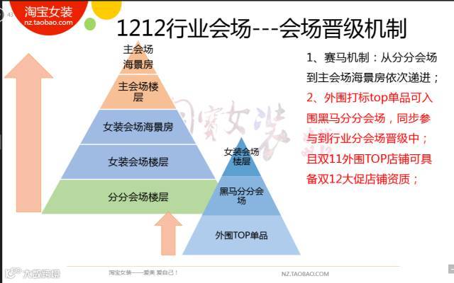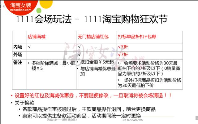关于会场,对外推广会有一些特色会场,狂欢层会有横向的做双12的个性化尝试,比如无限摇一摇之类,消费者的现金红包可以全场使用,店铺双11是7折,双12是5折,店铺满返红包不能随意变动。
