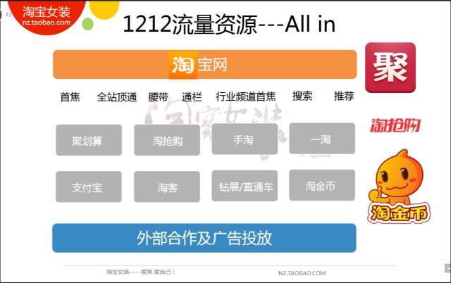 双12要做三件事:第一将2015年营销和培新了一年的风格、大厂、线下品牌做出新成绩,看到增长点;其次不论是商家还是淘宝,大促都是一次练兵的机会,团队的问题和业务的方向往往在大活动中能够显现;第三,最重要的一点,双12的定位是淘宝女装消费者的年终盛典,是对消费者的回馈,是拿出更好的产品和服务,不能仅仅理解成打折。