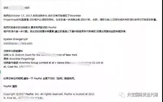资金账户遭冻结,PayPal通知某买家售卖产品侵权