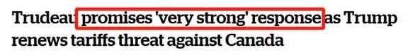 特鲁多表示,加拿大已经准备好部署任何必要措施,且已经制定了计划,一旦25%的关税实施,就立即对美国商品征收关税,最终提高到110亿美元!