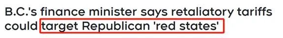 BC省昨天也开了会,厅长布伦达•贝利(Brenda Bailey)今天表示,面对川普2月1日可能对加拿大实施关税的威胁,BC也有对应的报复性措施,重点可能会放在美国红州,也就是共和党主导的州。
