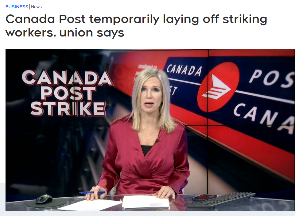 工会表示,加拿大邮政已经通知员工,根据《加拿大劳工法》相关条款,集体协议不再生效,他们的雇佣条件已发生变化。