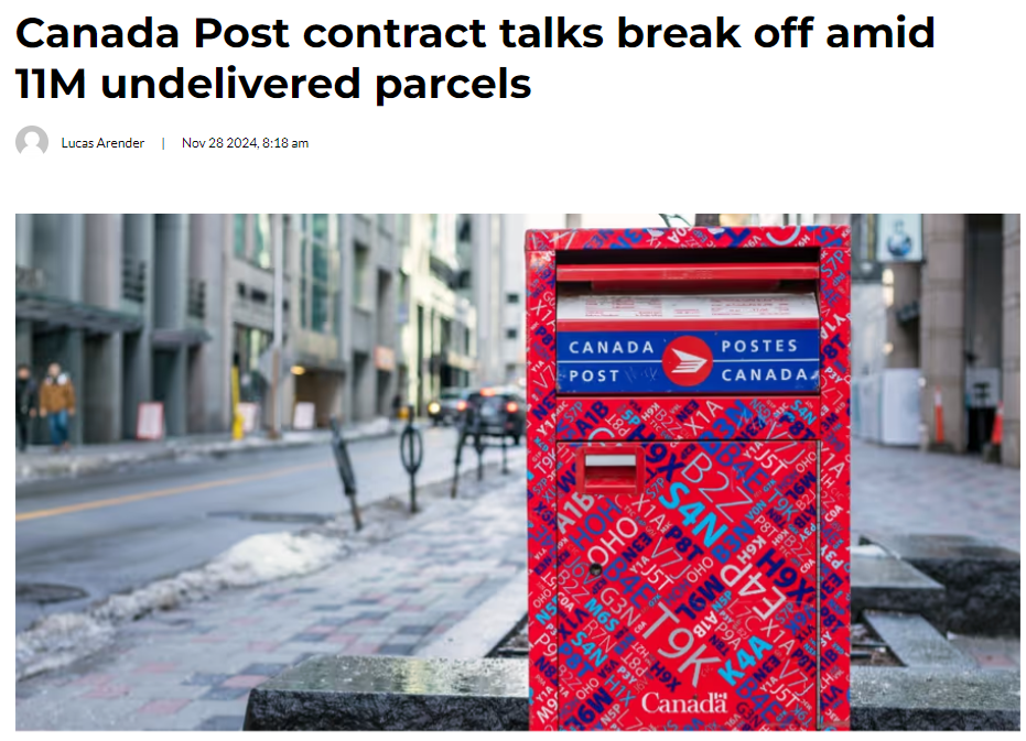 加拿大邮政谈判破裂,积压包裹高达1100万件!在一年中最繁忙的购物日即将到来之际,加拿大邮政仍未能解决已经持续两周的罢工问题。
