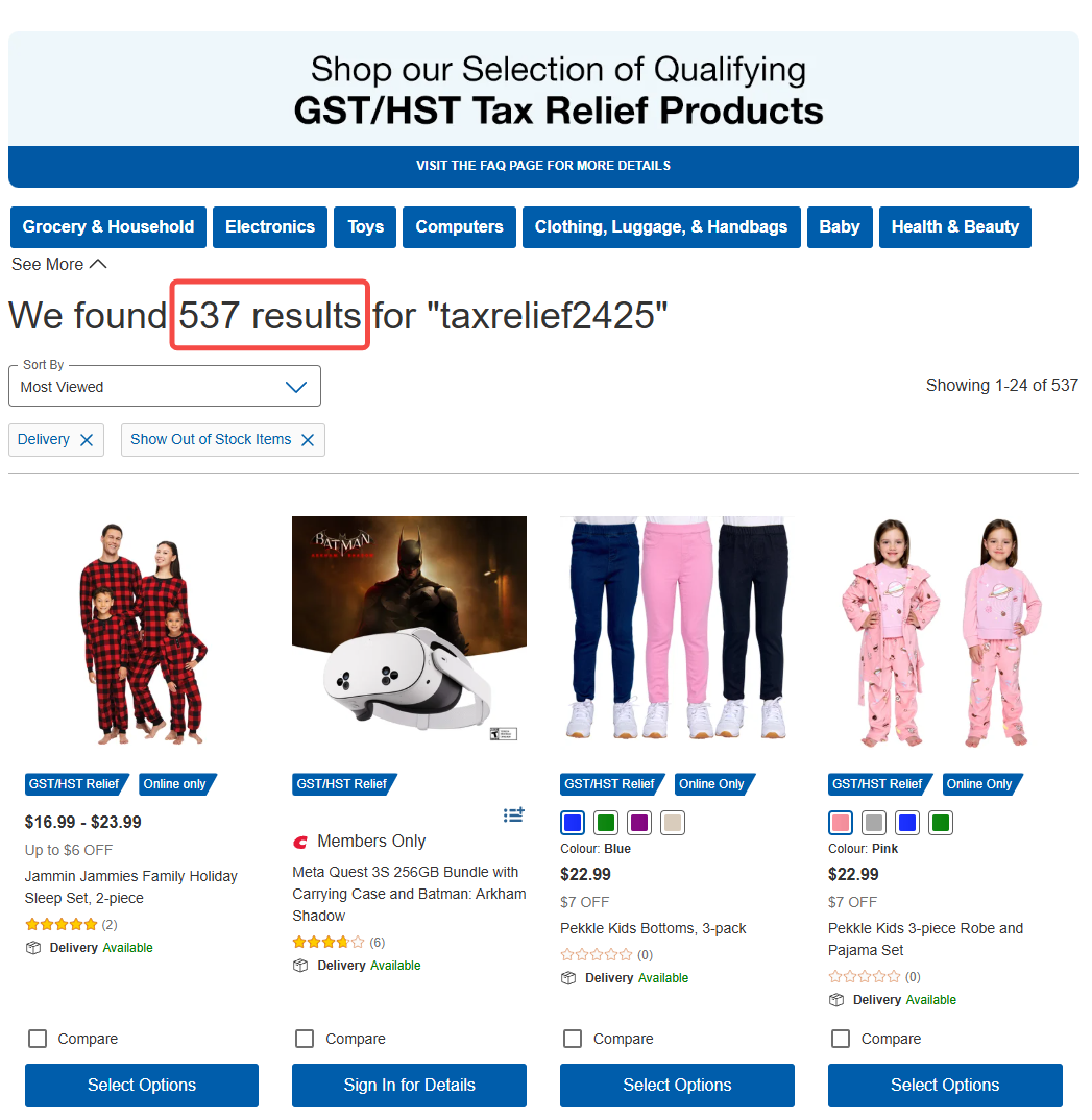 加拿大Costco、亚马逊已经创建了"GST/HST免税商品"类别,因此消费者不必费力寻找它们。