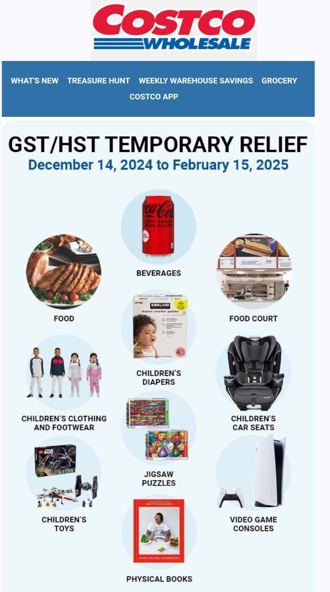昨天开始,联邦政府的GST/HST免税期正式生效,并将持续到2025年2月15日。