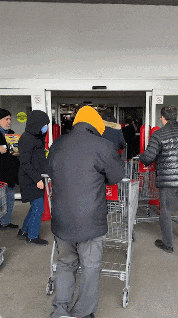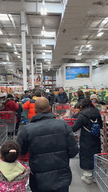 入口处人等人,店内通道人挤人!今天来Costco的都是勇士!