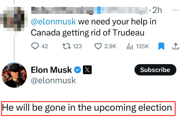 不仅如此,还有网友直接艾特了马斯克,让他帮忙把特鲁多给拉下台,结果引来本人亲回:“他下一届大选就得走人了。”