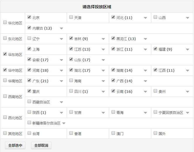 第三,卖家可参考去年同时间段的行业人群地域数据,再结合之前直通车地域投放的报表数据,进行筛选。