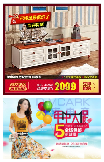 进行基本分析后,然后我们进入素材的准备。而现在距离2015年的年中大促还有一段时间,而这段时间,我们则根据店铺风格,大促氛围做出相应的素材。