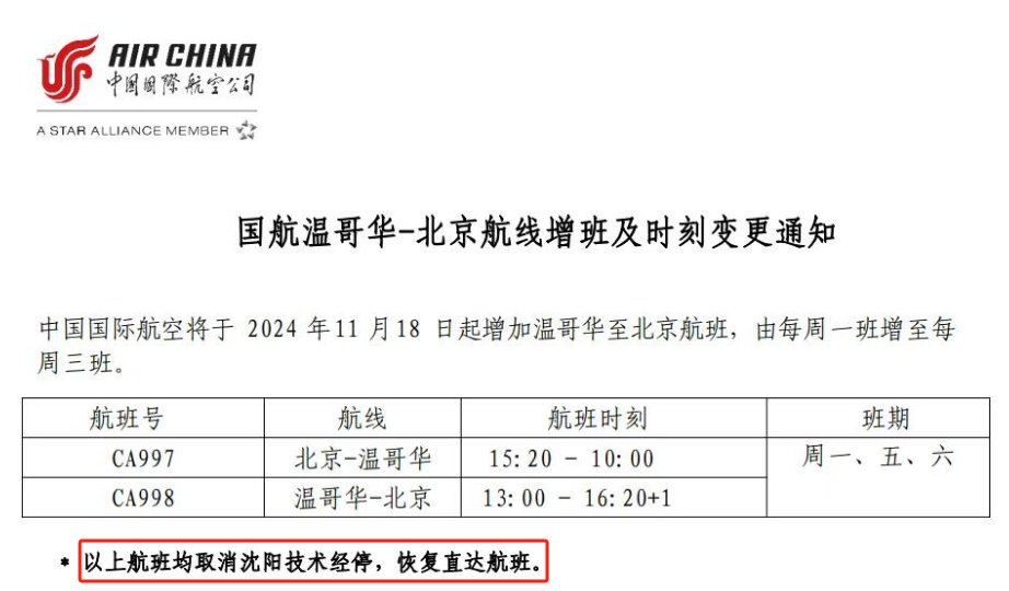 更重要的是,华人飞回北京不用再技术经停沈阳了,直飞抵达。