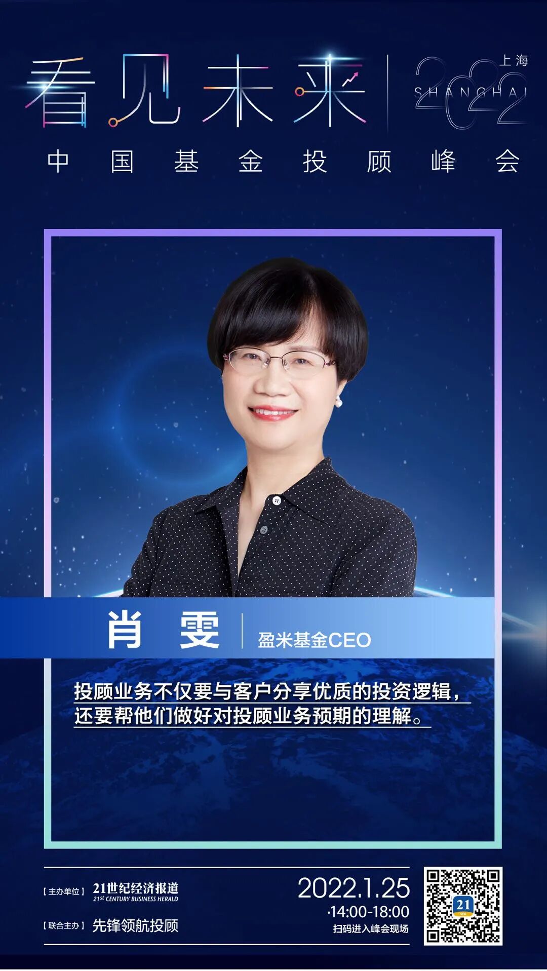 1月25日,“看见未来·2022中国基金投顾峰会”在上海线上举办。盈米基金CEO肖雯在会上发表了主题为《基金投顾数字化的思考和探索》的演讲。