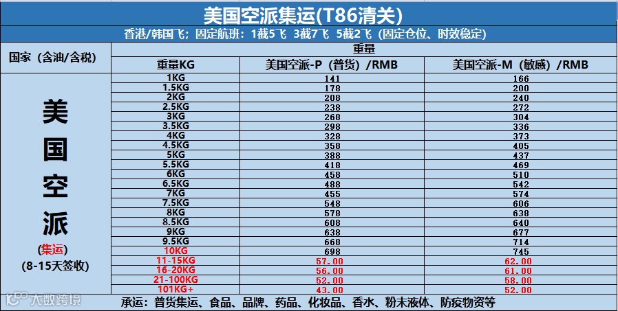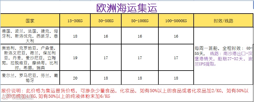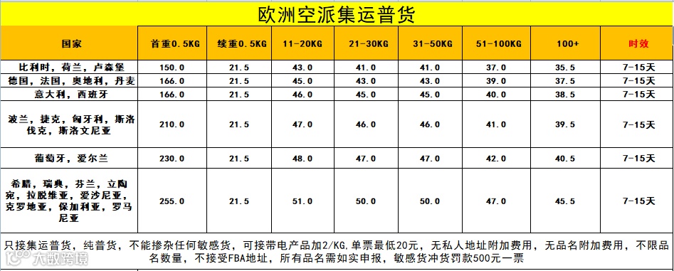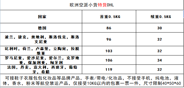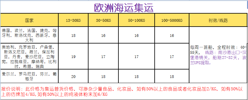 欧洲,美国集运空派,海派超低价促销,请参考以下价格表,更多优势价格请点击此公众号的价格查询,集运,就是这么简单