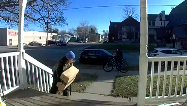 这种小偷又被称为“门廊大盗”,伺机在别人家门口拿走快递,全然不顾自己是否被监控拍下。