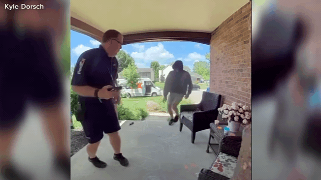这个屋主时33岁的居民多尔施(Kyle Dorsch),当时他正在等自己的苹果手表快递,看着预计送达时间差不多到了,等敲门声响起,就走出去准备接包裹。