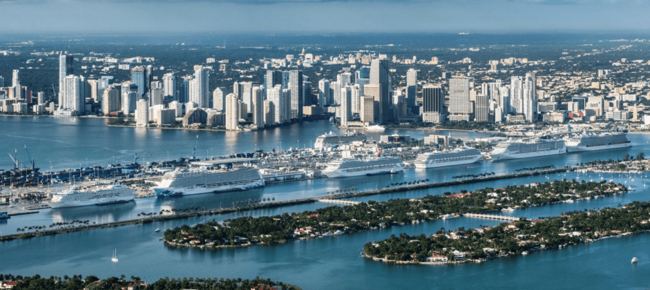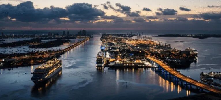 迈阿密港在美国最繁忙的集装箱港口排名第10位,2021年吞吐量为1,254,062 标准箱。迈阿密港称其每年为迈阿密-戴德县的当地经济贡献超过430亿美元,并为佛罗里达州提供了超过334,500个工作岗位。