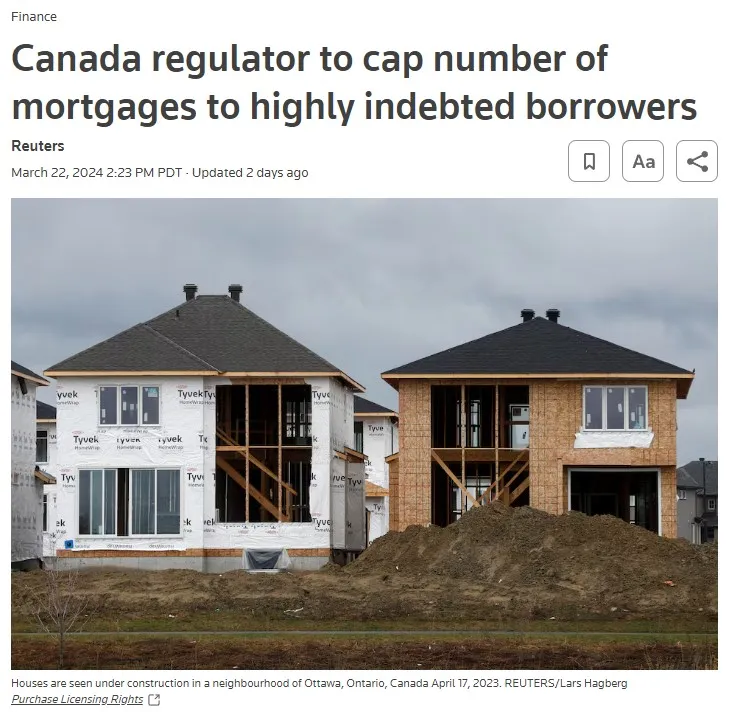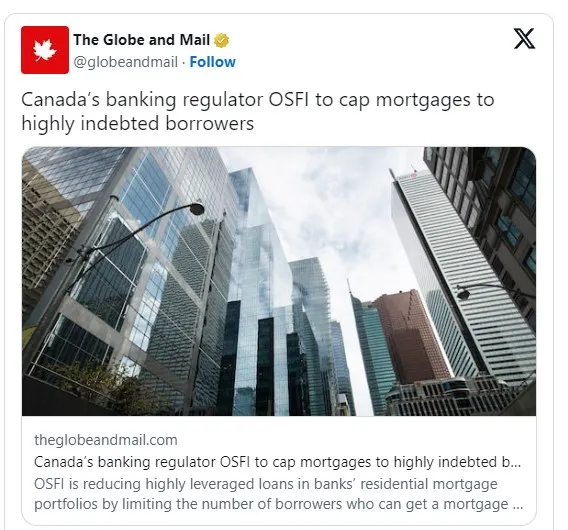 总的来说,加拿大的金融监管机构OSFI正在努力确保市场的稳定,避免过度借贷带来的风险。