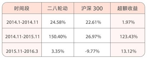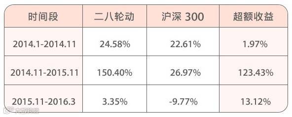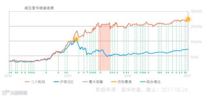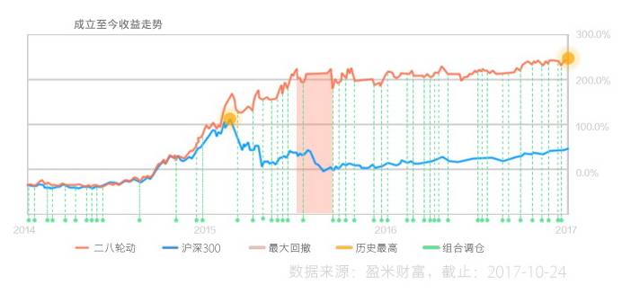 自2014年二八轮动组合成立三年多的收益率已达251.58%