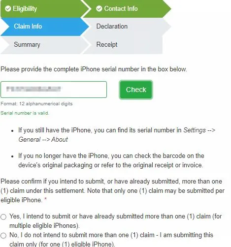 每个符合条件的iPhone只能提交一次索赔。