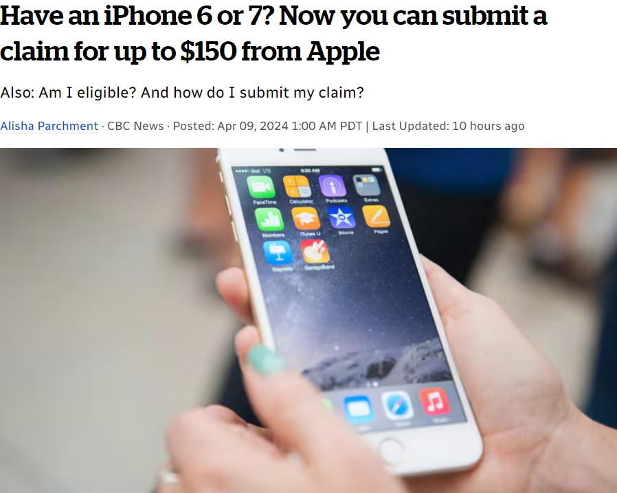 3月4日,数年和解尘埃落定。BC高院批准了和解协议,苹果公司将赔偿加拿大用户总计1,440万元。根据索赔人数,每人获得的赔偿金额预计17.50元至150元不等。