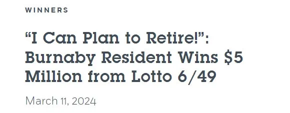 截至2024年,BC省彩票玩家已从Lotto 6/49中兑换了超过9,300万元的奖金。