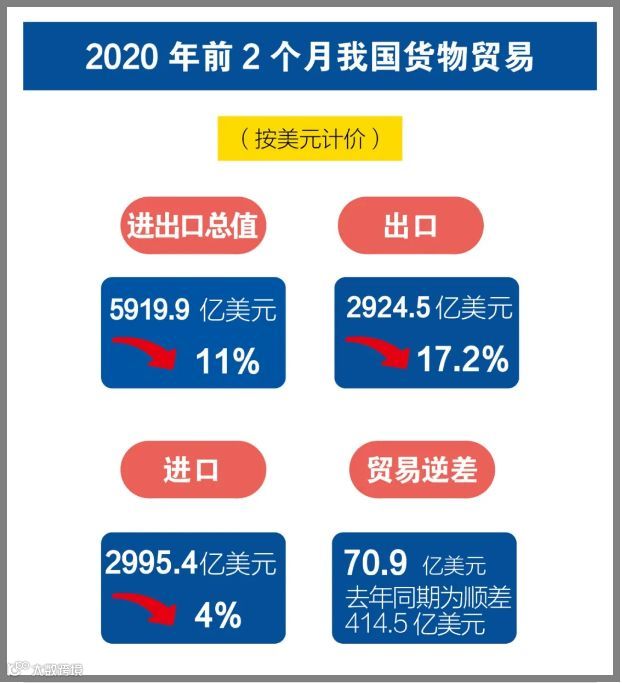 受此次春节因素特别是疫情影响,我国前两月外贸进出口收到冲击。据日前海关总署公布的数据显示,今年前两月我国外贸进出口总额下降9.6%,其中,贸易出口总额下滑明显,以2.04万亿元同比降15.9%,较去年12月9%的增速更是下降24.9个百分点。