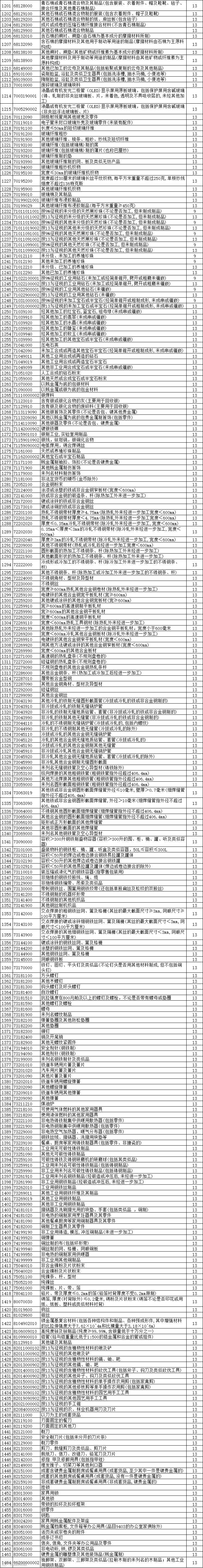 公告显示,除瓷制卫生器具外,在此次出口退税率被提至13%的1084项出口产品中,还包含宝石翡翠、工业器具以及化工原料等;而在出口退税率涨至9%的380项产品中,包含植物神经调节剂和大量改良种用动物、畜肉类和水果类食用产品等。比如,其他改良种用马、驴、水牛、绵羊,不超过185克的改良种用鸡鸭鹅以及鳄梨、芒果和番石榴等。