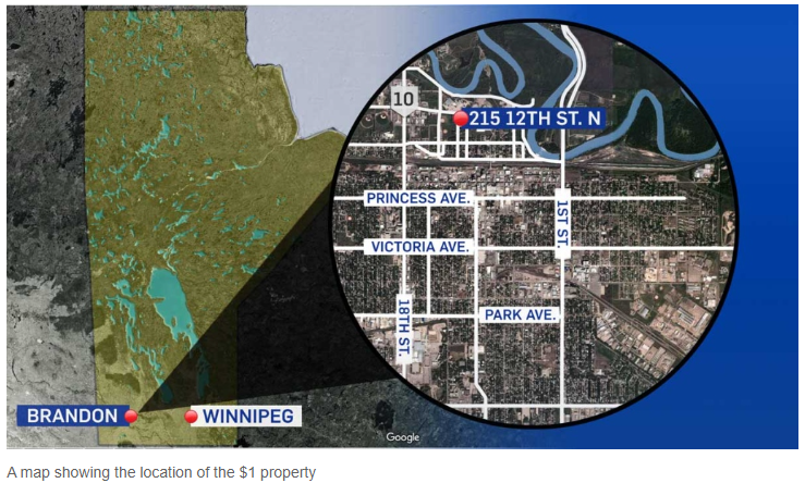 离奇操作可不止这一家,南边曼尼托巴省Brandon市有一处房产也在1元甩卖。为了解决无家可归和经济适用房问题,这栋房产将改建成55个150-200平米的单元房。