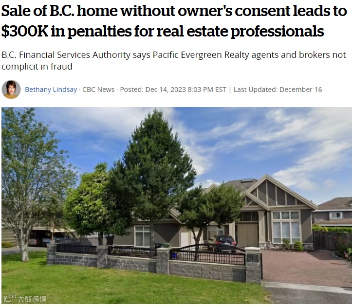 对此,BC省金融服务管理局(BCFSA)在一份通知中写道,参与2019年销售的Pacific Evergreen Realty的代理人和管理经纪人并未参与该骗局,但“他们未能在交易的多个流程采取合理措施。”