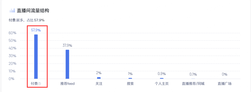 从流量结构来看,该直播间近60%流量来源于付费。