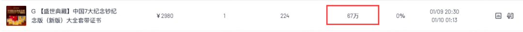 其中销量最高的商品——纪念币全套卖出224件,销售额达67万。