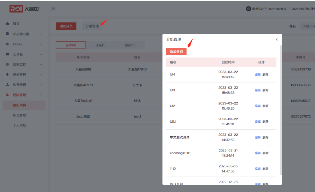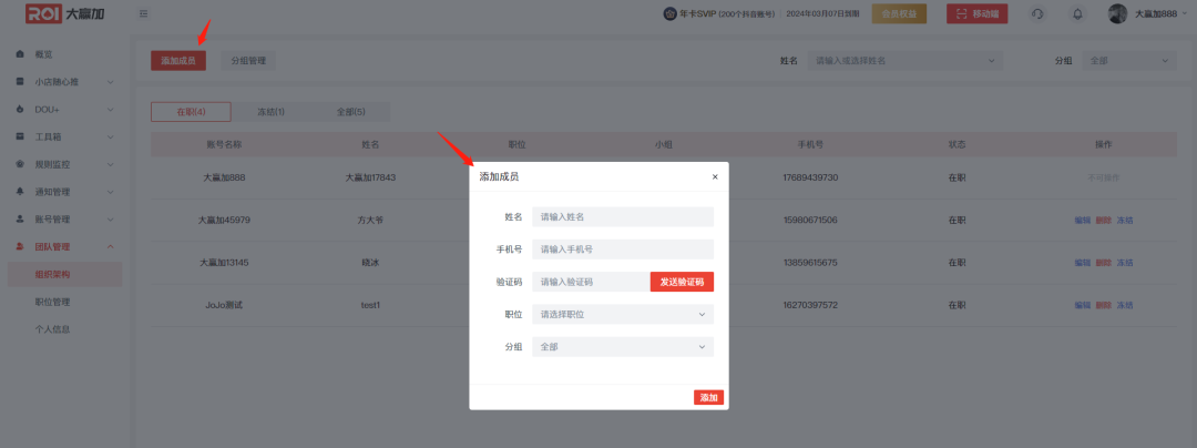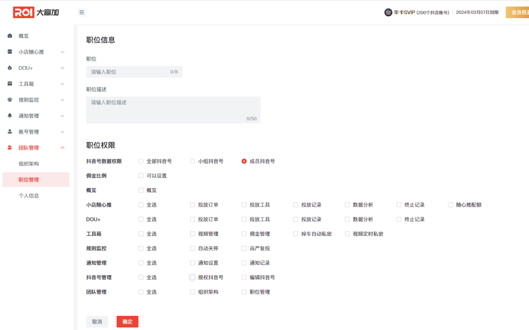 组织架构设置,既能够对多个成员进行差异化管理,又能够对抖音账号进行细分管控和数据监控。