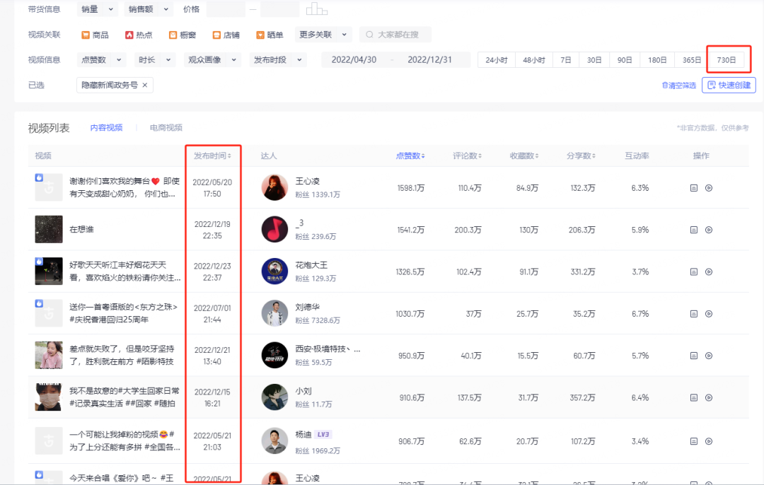 其实在两年前,抖音上的爆款视频还是明星发布的视频占多数。我们从考古加数据上发现,2022年点赞量前十的视频中超过6成为明星分享的视频。