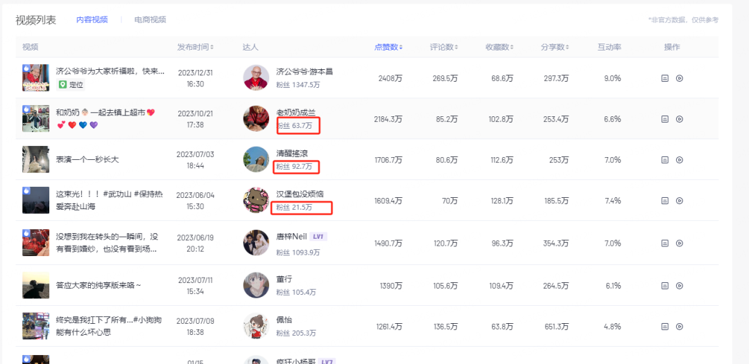 但是到了今年,爆款视频已经不是明星和超级达人的专属,粉丝数低于百万的博主所发布的视频,也达到了千万级别的点赞量。