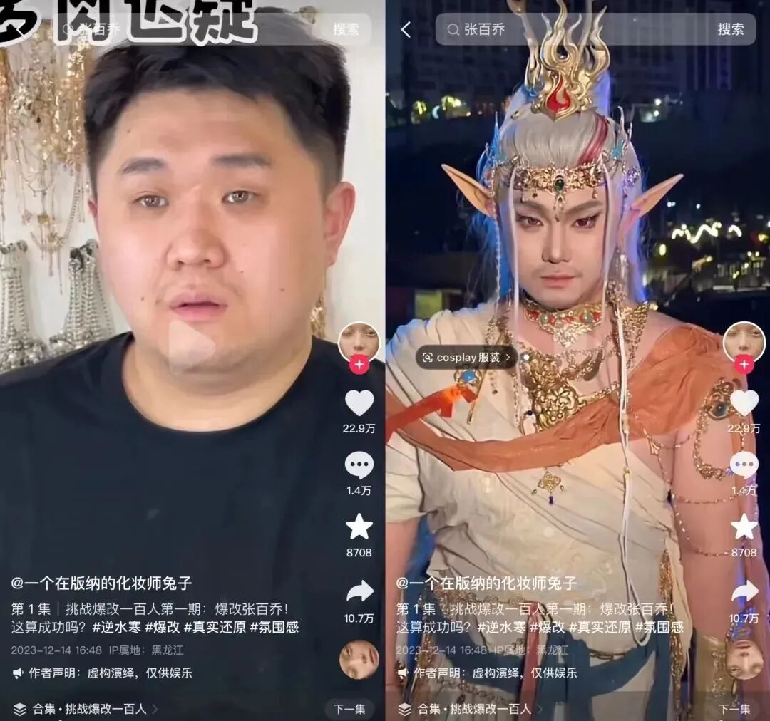 2023年末,“化妆师兔子”在抖音上发布了爆改系列短视频,命运的齿轮由此开始转动。