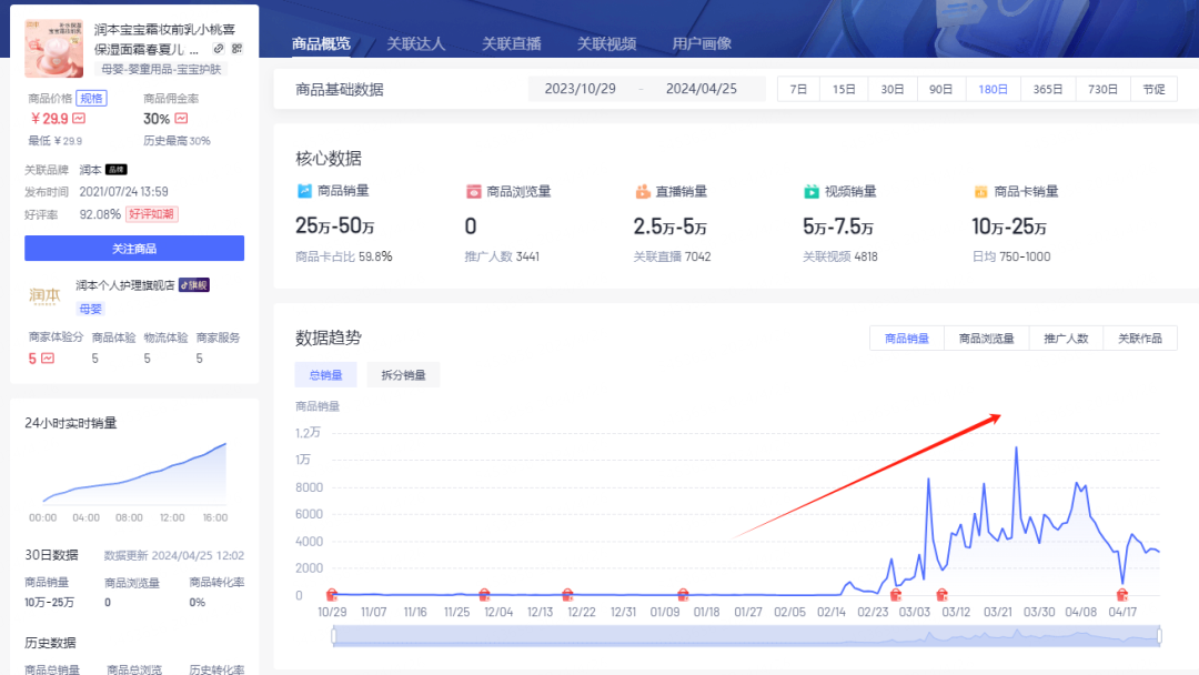 抖音达人 @爆打小狮 发布的《宝宝霜爆改妆前乳》,一条视频获赞4.5万。视频热度也给达人带货提供了有效助力,这条视频下的商品销售额高达10-25万,打破了原先销量低迷的困境。
